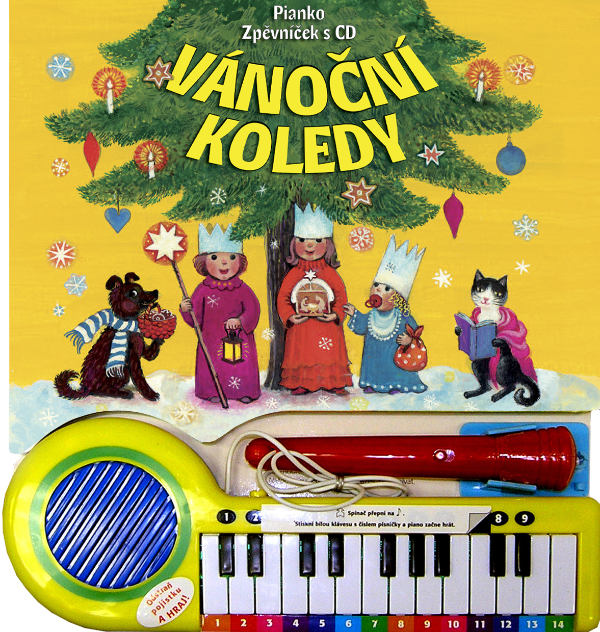 Ilustrovaný zpěvník Vánoční koledy s elektronickým pianem a mikrofonem. Obsahuje 12 nejznámějších a nejoblíbenějších vánočních koled. Jako bonus je zde přiložen zpěvník s dalšími 16 českými koledami, které je možné na elektronickém pianu zahrát a zazpívat podle hudby z přiloženého CD. Celkem obsahují oba zpěvníky 28 tradičních českých koled.